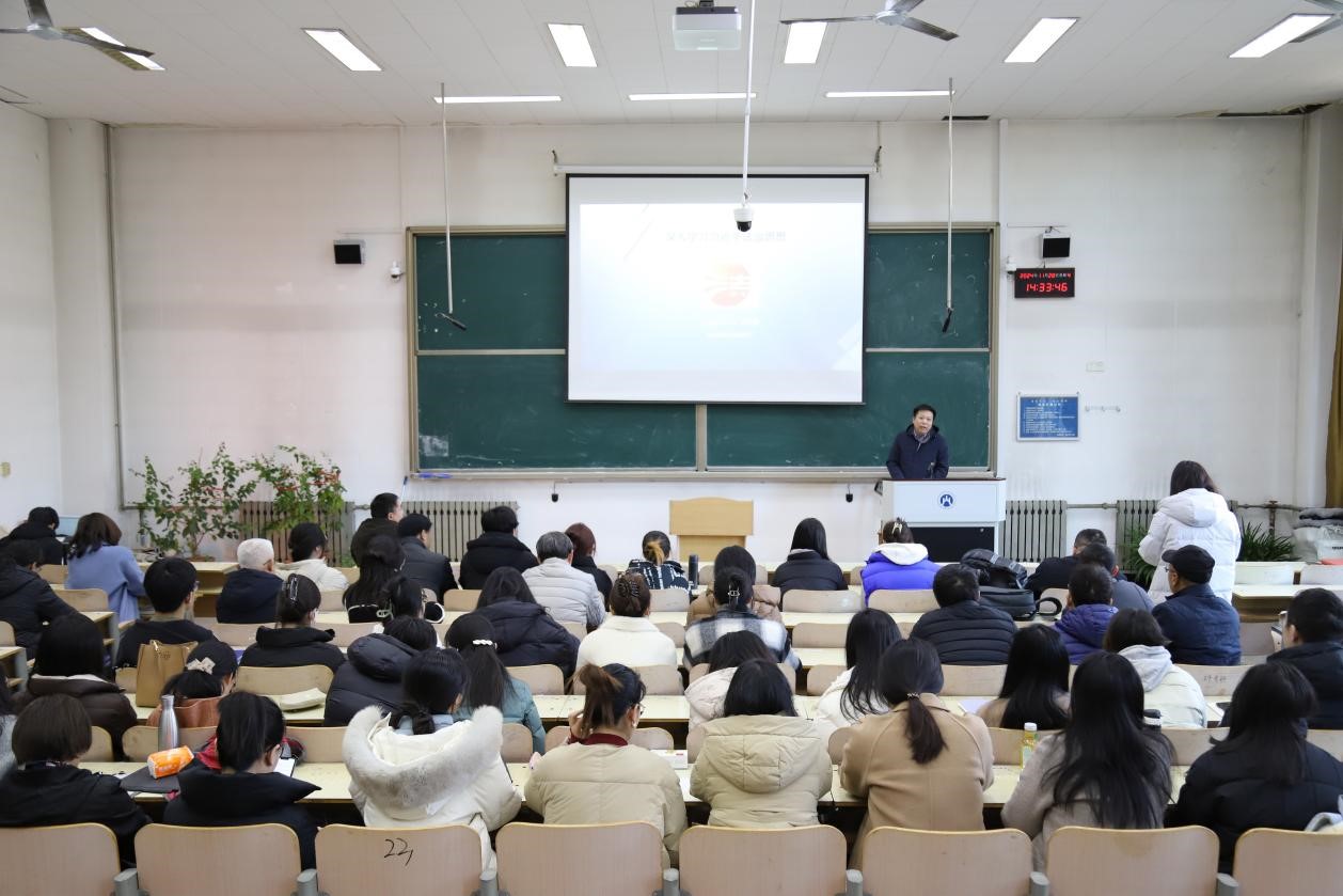 2024年11月28日,注册送彩金 教职工大会在燕山校区逸夫楼102召开。学校就业指导处处长刘奇耀、注册送彩金 党委理论学习中心组(扩大)、全体教职工、党委科级及以下干部、党员参会,党委书记邵文涛主持会议。