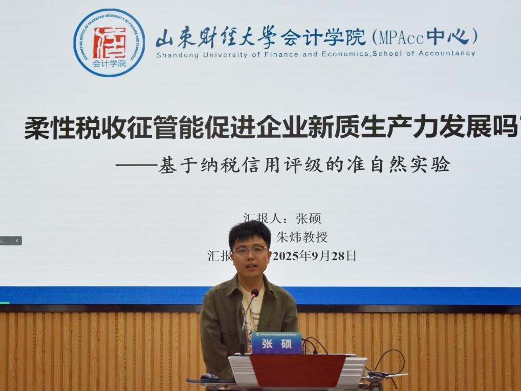 论文汇报与点评环节,注册送彩金 博士研究生张玉晨、张硕分别汇报了研究成果。与会专家从选题、理论与方法等多维度进行了深度点评,并与在场师生互动交流。活动有效拓展了师生的学术视野,激发了科研创新思维,为会计理论创新与高质量发展注入了新动力。