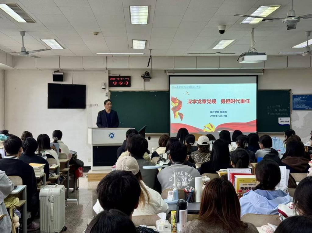 任海伦以《深学党章党规,勇担时代使命》为题讲授专题党课,并对本批次党员发展对象提出四点要求。一是坚定信仰、厚植家国情怀,通过具体事例阐释共产主义需代代奋斗,鼓励学员立足当下、勇毅前行。二是加强党章党纪学习,将其作为行为准则,学深悟透、精准践行。三是立足服务本职,做好师生桥梁,坚决杜绝“入党前后反差大”的现象,始终坚持知行合一。四是积极投身实践,坚持终身学习,既要重视此次党课培训的学习机会,又要在实践中锤炼本领,实现理论学习与实践的有机结合。