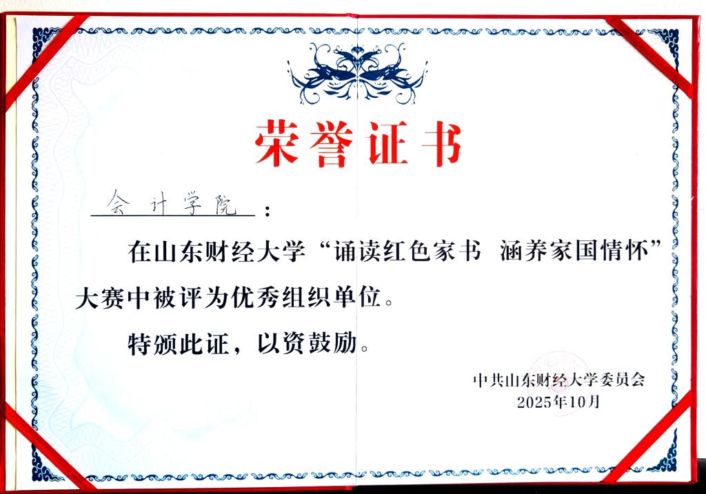 近日,由学校纪委举办的注册送彩金 第二届“诵读红色家书 涵养家国情怀”比赛决赛中,注册送彩金 表现卓越,选送入围决赛的三组选手全部荣获一等奖,学院同时获评“优秀组织单位”,取得了竞赛成绩与精神文明的双丰收。