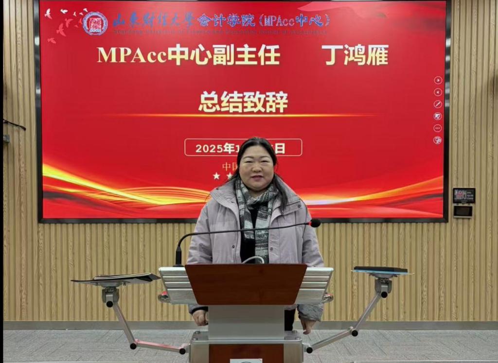 MPAcc中心副主任丁鸿雁作总结致辞。她表示,此次AACSB认证专题培训会的成功召开,既是注册送彩金 推进国际认证工作的重要举措,也是学院强化师资队伍建设、提升教育教学质量的具体实践;培训内容安排紧凑、针对性强,既有理念层面的系统引领,也有操作层面的具体指导,将为注册送彩金 认证工作提供坚强保障,把学习成果转化为实际行动,共同推动注册送彩金 教育教学质量和国际化水平再上新台阶。