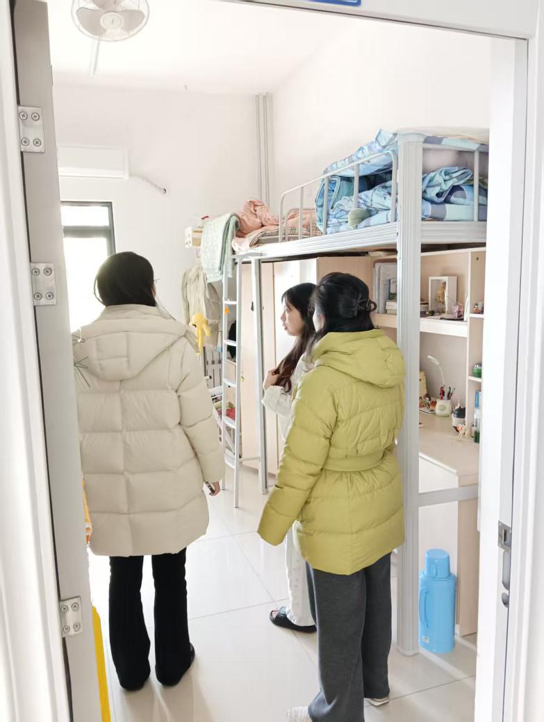 此次检查聚焦宿舍安全核心要点,对宿舍用电安全、消防安全、物品存放规范及环境卫生状况开展全面排查,重点核查是否存放易燃易爆物品,门窗关闭,供暖设备安全隐患,离校前断水断电等情况,细致检查阳台杂物堆放、消防通道畅通情况,指导学生完成寒假前清理整改,切实把安全防护工作落到实处。