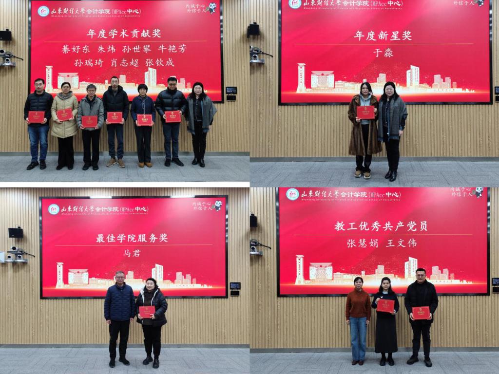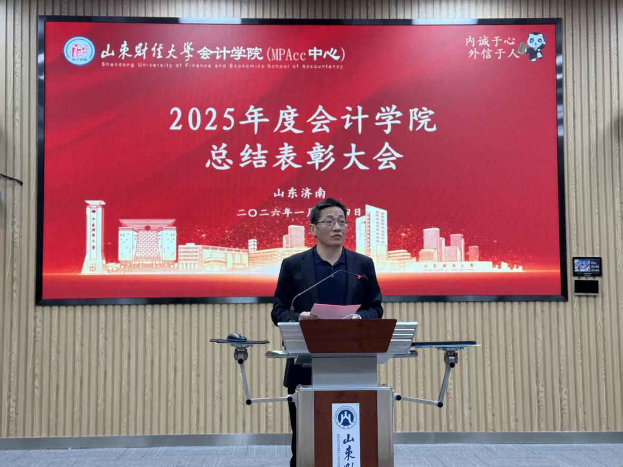 院长葛永波系统回顾了过去一年学院在学科建设、人才培养、科学研究、师资队伍、学生管理、社会服务及党建与思想政治工作等方面的重点举措与显著成效。针对下一步工作,他提出三点要求:一是要强化政治引领,深入学习贯彻习近平新时代中国特色社会主义思想和党的二十届四中全会精神,把党的领导贯穿学院发展全过程;二是要聚焦核心任务,围绕科研成效、AACSB国际认证等关键领域攻坚克难,补齐发展短板;三是要凝聚奋进合力,全体教职工要同心同德、锐意进取,共同推动学院各项工作再上新台阶,为学校高质量发展贡献更大力量。