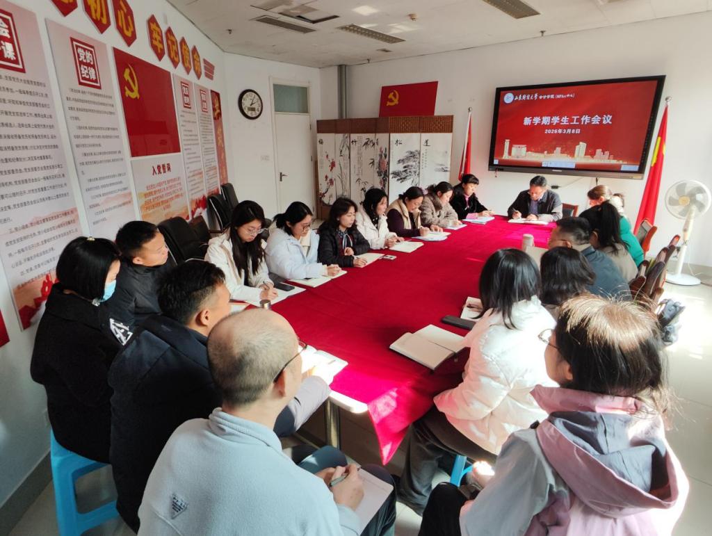 为明确新学期工作方向、压实工作责任,3月8日,注册送彩金 召开新学期学生管理暨就业专题工作会议,学院党委书记任海伦,副书记吕晓燕、张贞梅和全体辅导员参加。