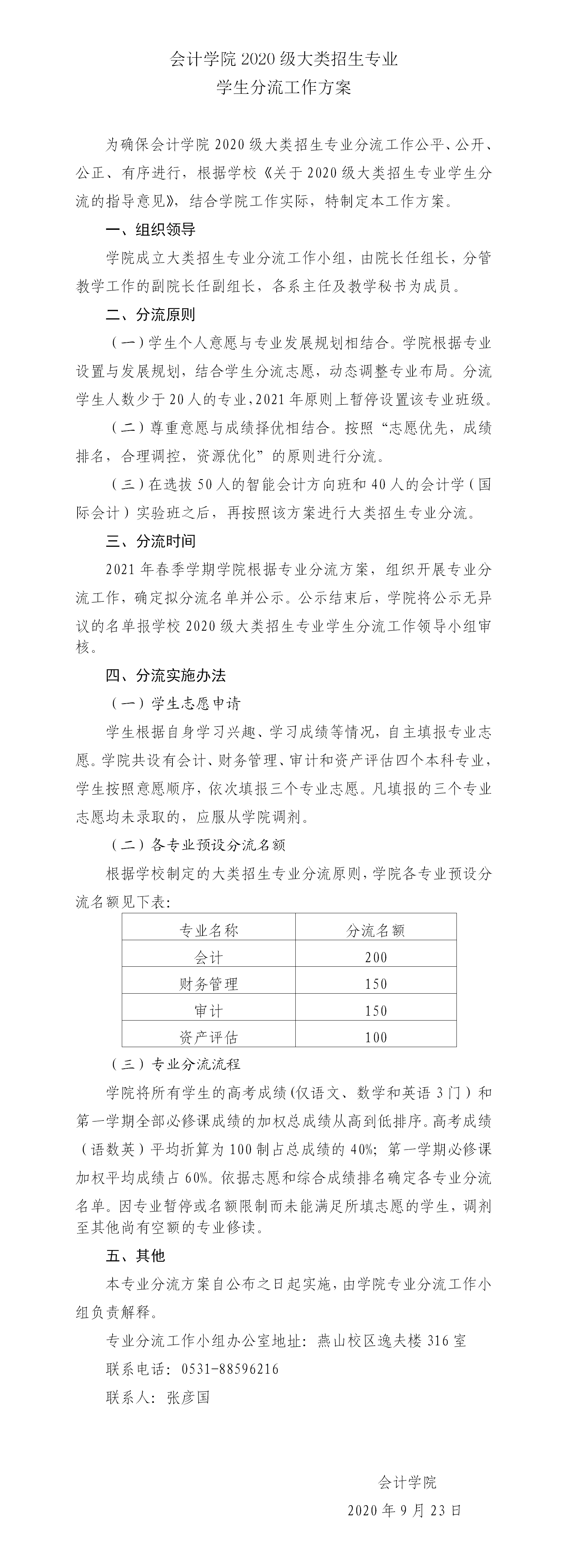注册送彩金 2020级大类招生专业--学生分流工作方案