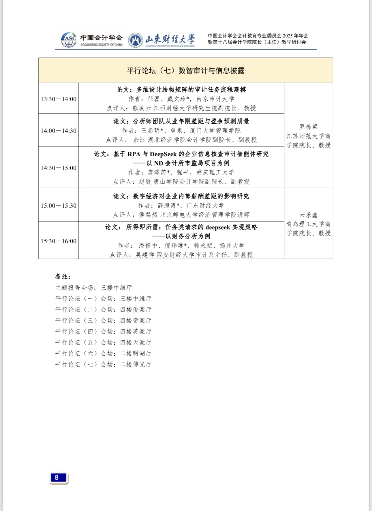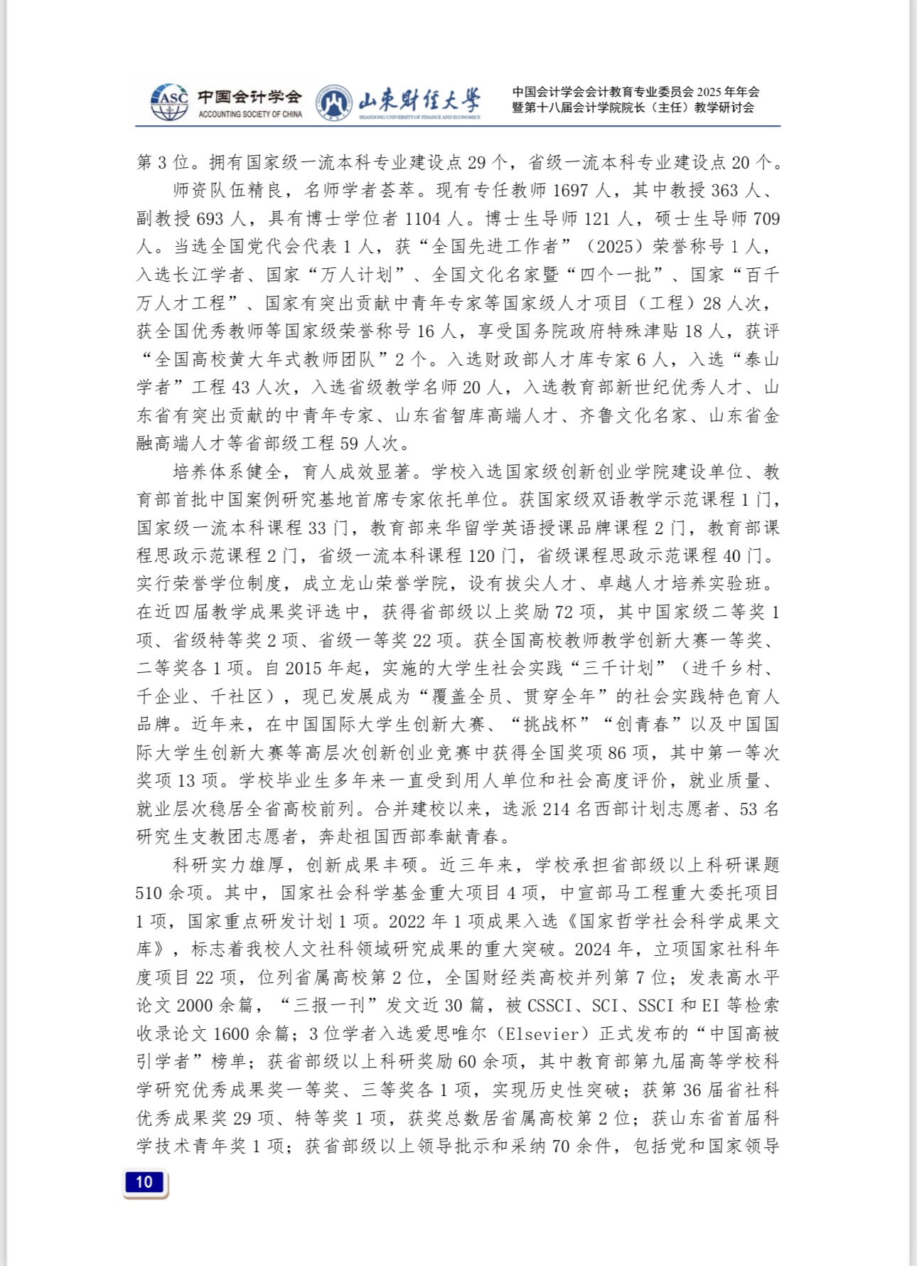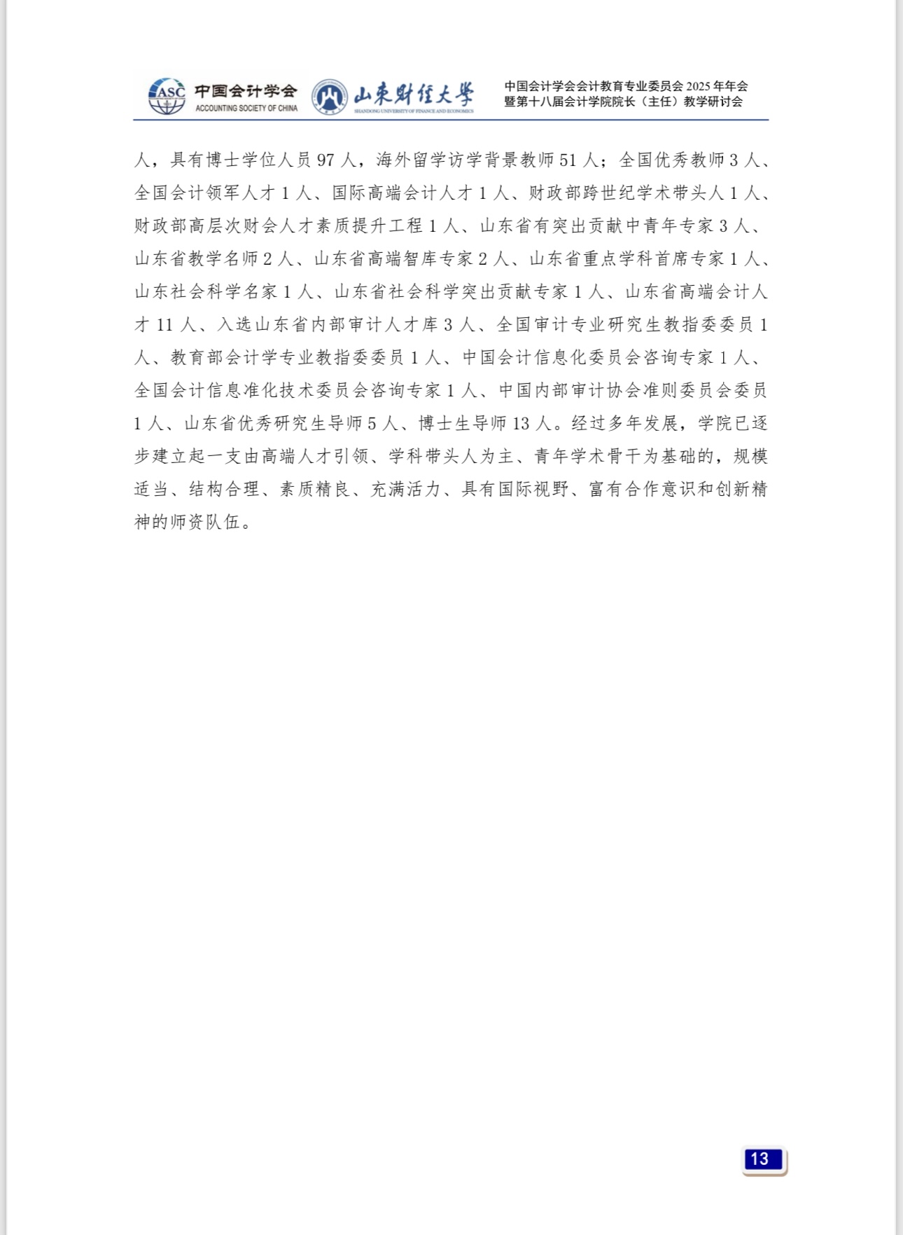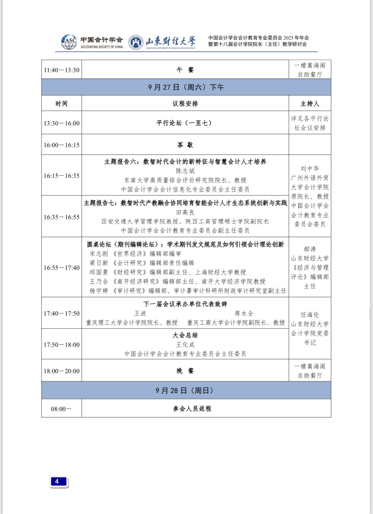中共中央、国务院印发的《教育强国建设规划纲要(2024—2035 年)》,是首个以教育强国为主题、以全面服务中国式现代化建设为重要任务的国家行动计划,是全面推进教育科技人才一体统筹发展、提升国家创新体系整体效能的顶层制度安排,对落实党的二十大重大部署,更好发挥教育强国建设在全面推进强国建设、民族复兴伟业中的先导任务、坚实基础、战略支撑作用,具有重大而深远的意义。AI时代,传统会计教育模式面临巨大挑战。深化会计教育综合改革、建设高素质会计教师队伍、完善会计拔尖创新人才发现和培养机制、塑造立德树人新格局,是会计教育界贯彻落实教育强国战略的重要举措。为此,由中国会计学会会计教育专业委员会主办、注册送彩金 承办的“中国会计学会会计教育专业委员会2025年年会暨第十八届注册送彩金 院长(主任)教学研讨会”,于2025年9月26日至28日在山东省济南市举行,以下是会议具体安排。