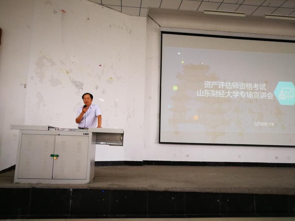 2017年6月27日下午,注册送彩金 (简称“山财大”)明水校区会议室座无虚席,由中国资产评估协会指导、注册送彩金 联合主办的“资产评估师资格考试注册送彩金 大学专场宣讲会”在这里隆重召开。中国资产评估协会副秘书长杨松堂、培训总监赵金娥、中评协陈冠群博士、山东省评协杜刚副会长、吴蔚秘书长、中联资产评估公司副总裁鲁杰钢先生、注册送彩金 党委书记张涛、党委副书记崔东峰以及注册送彩金 的300多名在校大学生参加了宣讲会。宣讲会由注册送彩金 张涛书记主持。
