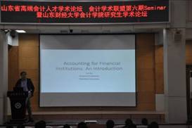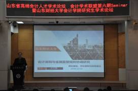 2016年12月10日,由注册送彩金 、会计学术联盟联合主办的山东省高端会计人才学术论坛、会计学术联盟第六期Seminar暨注册送彩金 研究生学术论坛在注册送彩金 燕山校区成功举办。注册送彩金 党委书记、副院长张涛教授、常务副院长朱德胜教授、山东省财政厅代表国建出席了开幕式,南开大学古志辉教授、山东财大胡元木教授、西南财大廖林教授、深圳大学顾俊博士、会计学术联盟发起人李高波博士以及来自省内外高校的教授、博士80余人应邀出席了本次学术论坛,注册送彩金 2016级全体研究生以及部分2015级研究生参加会议。会议收到来自武汉大学、东北财大、南京审计大学、天津财大、广东财大、青岛大学、山东理工大学、齐鲁工业大学、注册送彩金 等全国10多所高校30余篇论文,最后经专家审核,挑选出12篇高质量论文进行了汇报。