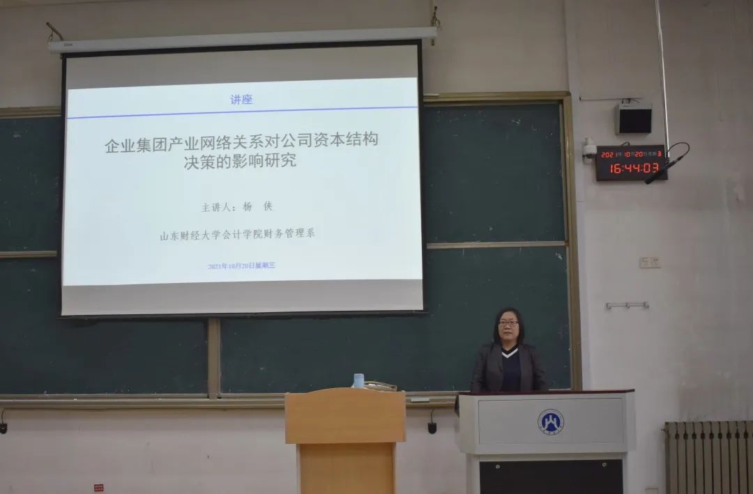 10月20日下午,注册送彩金 财务管理系讲师、管理学博士杨侠,在燕山校区逸夫楼Y301做了题为“企业集团产业网络关系对公司资本结构决策的影响研究”的讲座。讲座由财务管理系主任、MPAcc中心助理刘惠萍教授主持,注册送彩金 2021级全日制专硕聆听了讲座。