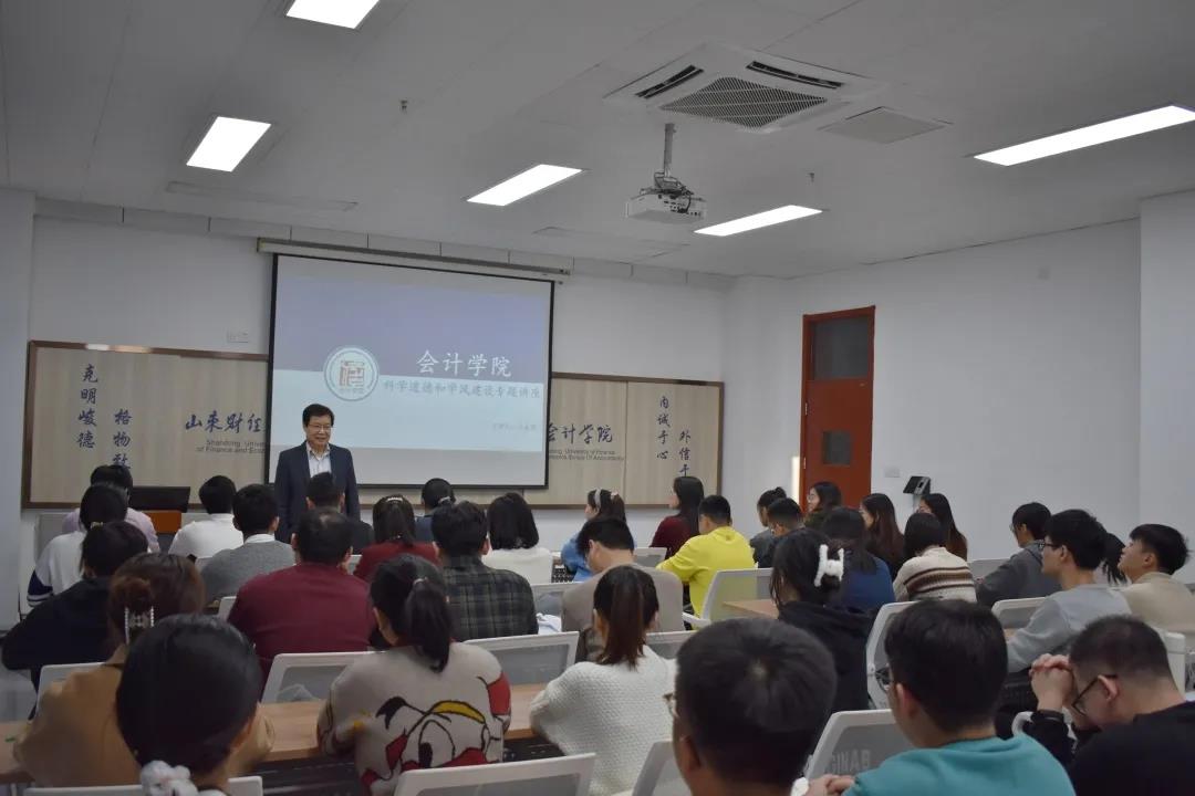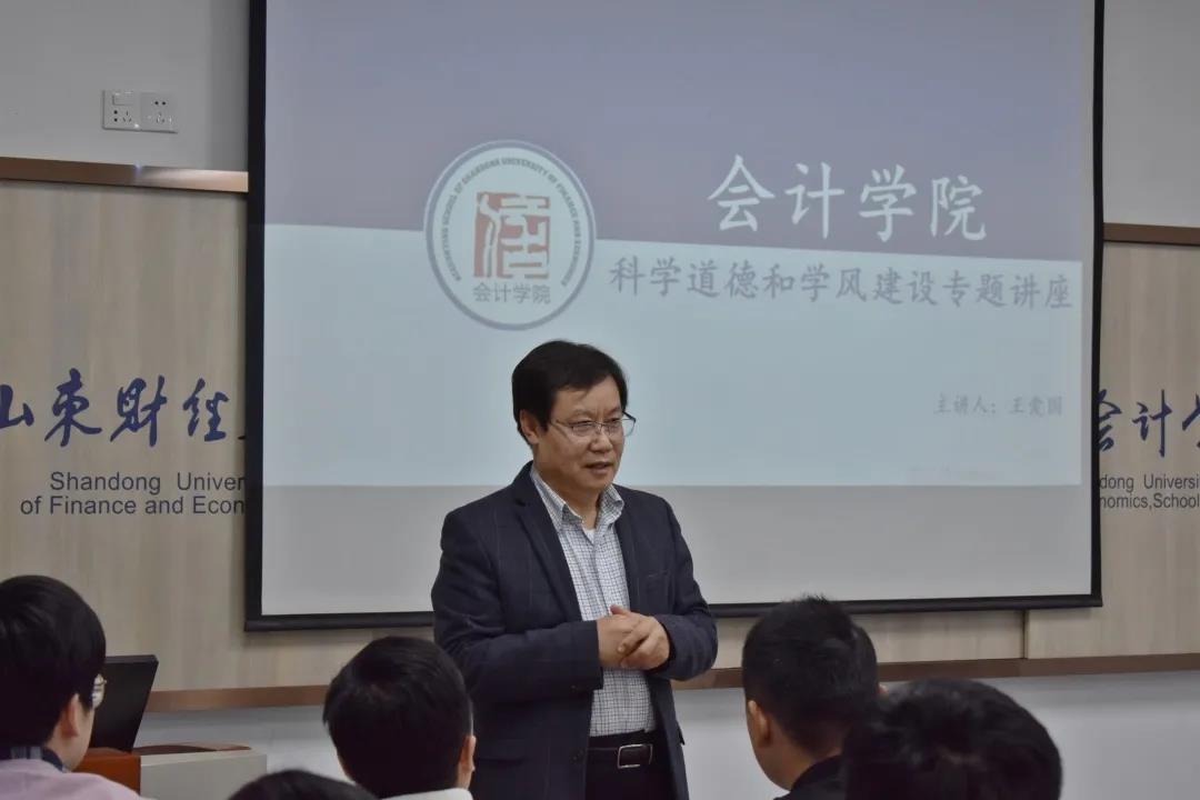 2021年11月10日下午,注册送彩金 院长王爱国教授在逸夫楼Y305作题为《科学道德和学风建设》的专题讲座。注册送彩金 2021级部分全日制硕士研究生聆听了讲座。