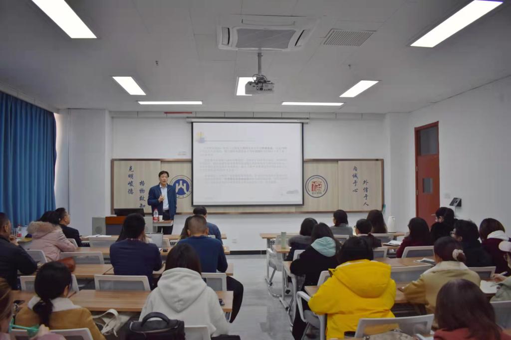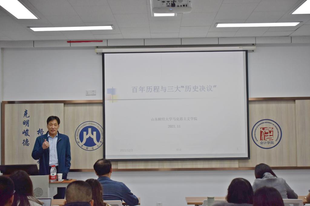 12月2日下午,注册送彩金 邀请马克思主义学院院长沈大光教授作题为“百年历程与三大历史决议”的专题讲座,讲座由注册送彩金 党委书记邵文涛主持,注册送彩金 部分教职工党员和学生党员参加了讲座。