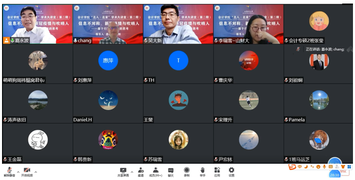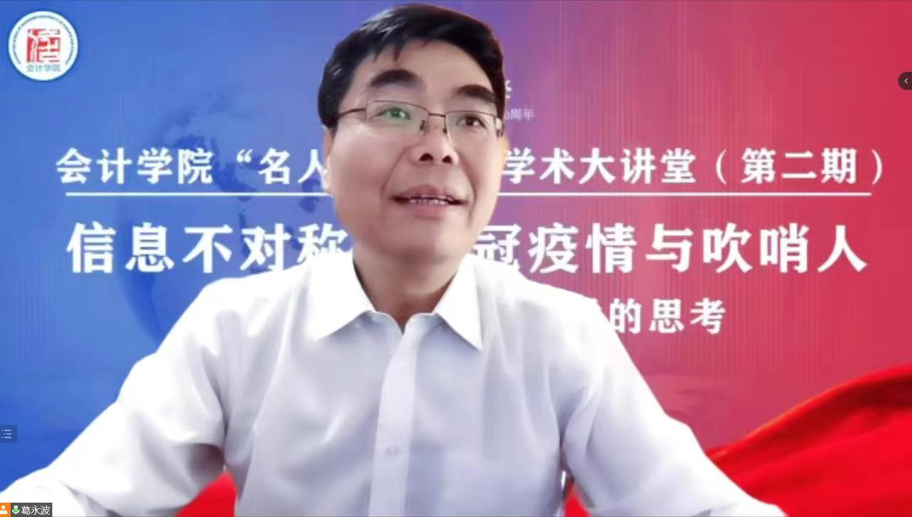 5月19日,注册送彩金 第二期“名人·名家”学术大讲堂顺利开讲,中央财经大学财经研究院昌忠泽教授做题为“信息不对称、新冠疫情与‘吹哨人’保护制度——基于行为经济学的思考”。本次活动由注册送彩金 院长葛永波教授主持,学院全体教师和研究生参加了本次讲座。