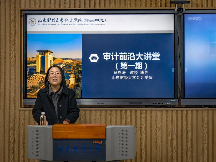 讲座伊始,刘惠萍代表注册送彩金 向马院长的到来表示热烈欢迎。她表示,审计前沿大讲堂系列活动不仅是一场高水平的学术讲座,更是我校首届审计专业博士研究生的关键课程。当前,数字技术的浪潮正深刻重塑审计的方法论体系,面对新形势、新挑战,我们必须以更开阔的视野、更前沿的思维,深入探讨审计理论创新与实践变革。希望注册送彩金师生通过此次讲座,能够近距离接触学术前沿,把握理论动态,提升研究能力。