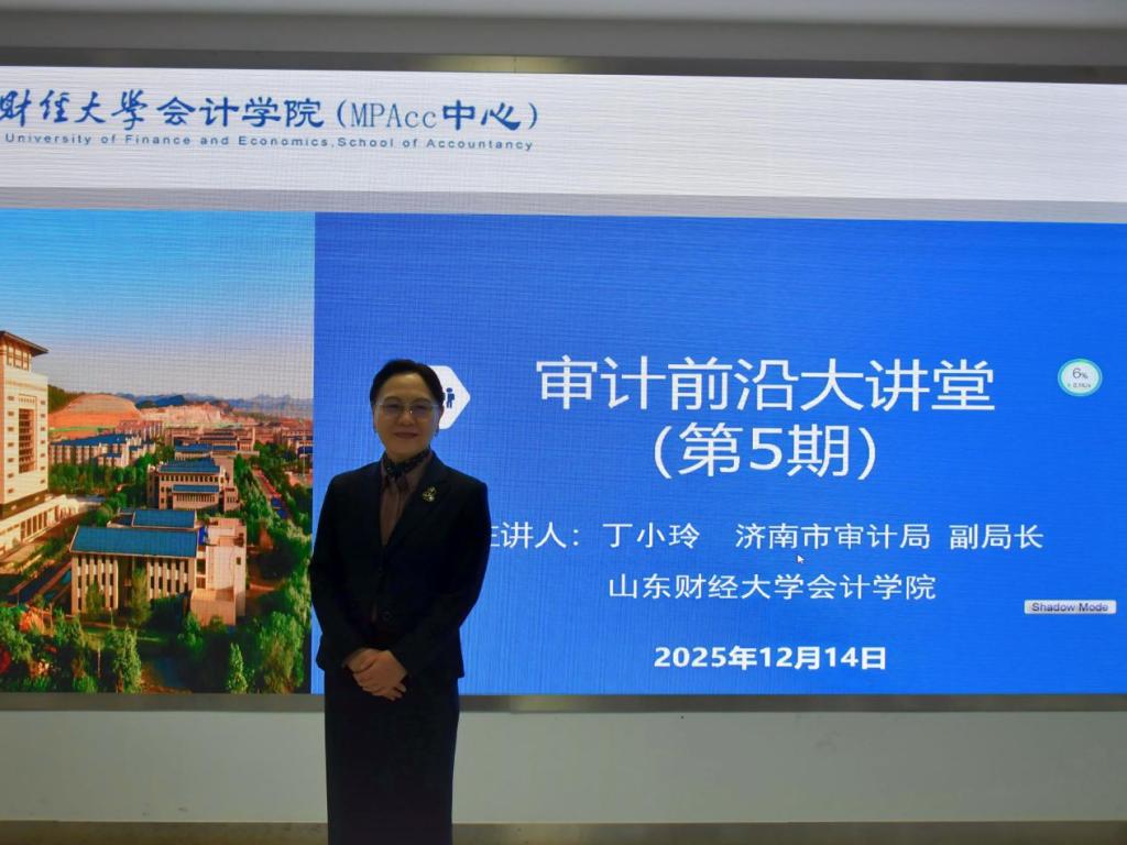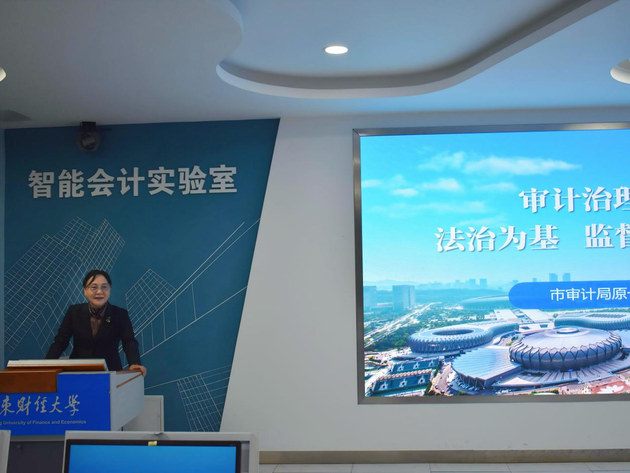 12月14日下午,审计前沿大讲堂第五期在燕山校区逸夫楼320顺利开展。注册送彩金 (MPAcc中心)特邀原市政协常委、市审计局原一级总监丁小玲开展题为《审计治理视域下:法制为基 监督为要 治理为魂》的专题讲座。讲座由审计系主任武恒光教授主持,审计专业博士、2023级和2024级审计硕士研究生及部分教师代表参加讲座。