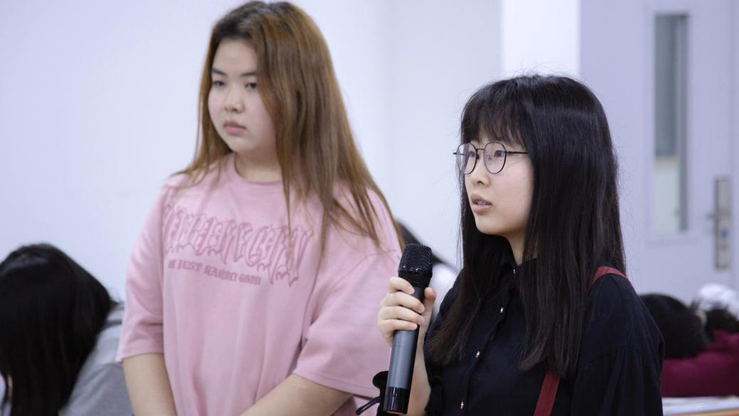 在提问互动环节中,同学们和分享人进行互动,积极发言,提出问题。杜依珊和陈歆鑫以耐心和友善的态度回答了每一个问题,为大家做出详细的解答。她们的回答不仅提供了实用的建议,还激发了同学们对学习和成长的渴望。