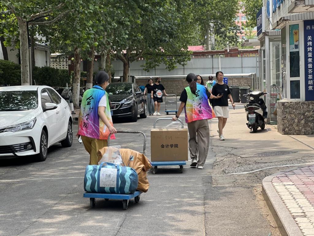 除了有序的组织,搬迁中的暖心场景随处可见:学生提前制作“行李标识卡”,注明新宿舍号与联系方式,减少搬运误差;或是自发组建“互助小组”,为体弱同学提供一对一帮扶;学院在四宿一楼设立“临时休息区”,备有防暑药品与湿巾。此外,志愿者们还承担着清查与归还工作,用细节诠释着“责任担当”。