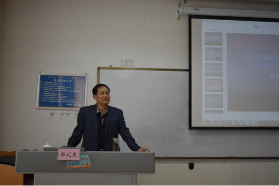 2019年3月13日下午,郭廷友教授应注册送彩金 邀请,在燕山校区Y308作题为《公司财务管控的相关问题—从战略层面进行财务管控的思考》的专题报告会。注册送彩金 副院长、MPACC中心主任朱德胜出席并主持了讲座,注册送彩金 刘惠萍教授以及非全日制硕士研究生聆听了讲座。郭教授现任山东省国资委派驻省管企业财务总监,同时是山东科技大学和山东农业大学兼职教授。
