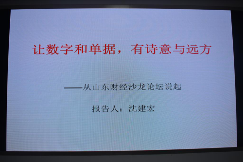 2019年10月19日下午,沈建宏先生应注册送彩金 邀请,在燕山校区逸夫楼Y320做题为《让数字和单据,有诗意与远方—从山东财经沙龙论坛说起》的主题报告。讲座由MPAcc中心主任、注册送彩金 副院长朱德胜主持,注册送彩金 2018级、2019级会计专硕聆听了讲座。沈建宏是山东省青年作家协会理事,大众报业集团记者、编辑,也是山东大型读书活动主讲人以及山东第一届“明湖论道”财经沙龙活动策划人。