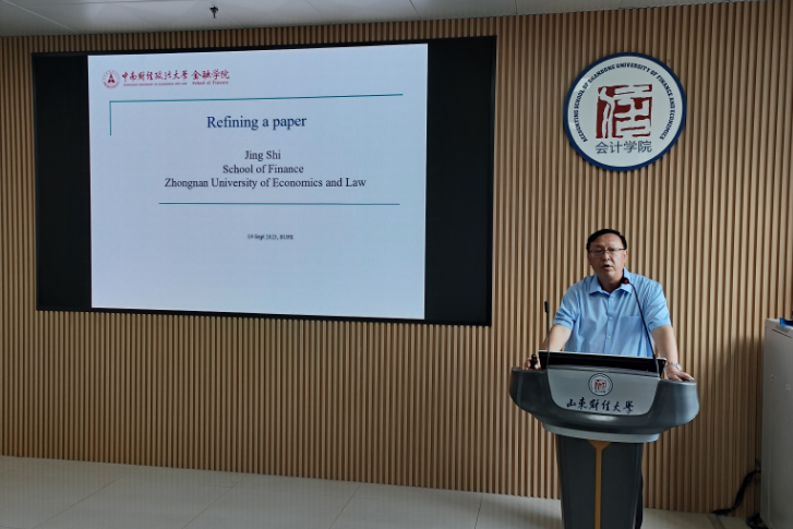 9月20日,中南财经政法大学石劲教授应邀做客注册送彩金 双周学术沙龙,为注册送彩金 师生作题为“Refine a Paper”的学术讲座。讲座由副院长吴大新主持,院长葛永波、副院长王守海、学院青年教师和全体博士研究生参加了活动。