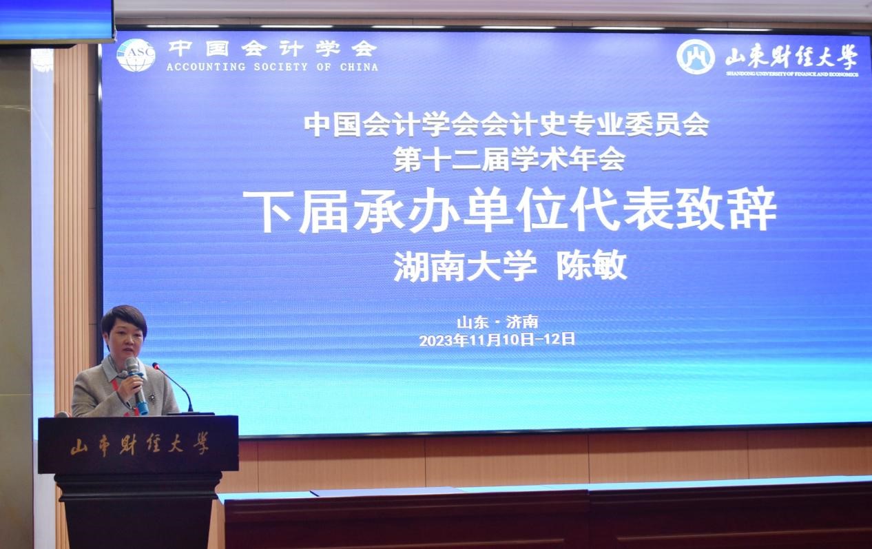 闭幕式上,湖南大学陈敏教授代表会计史专业委员会第十三届承办单位致辞。会计史专业委员会主任委员付磊教授在大会总结中表示,本次大会是一次丰富多彩的学术盛宴,大会极具创新性地邀请了改革的亲历者,既能呈现改革原貌,了解真正的前因后果,又加深了对中国会计发展的认识。注册送彩金 副院长吴大新主持闭幕式。