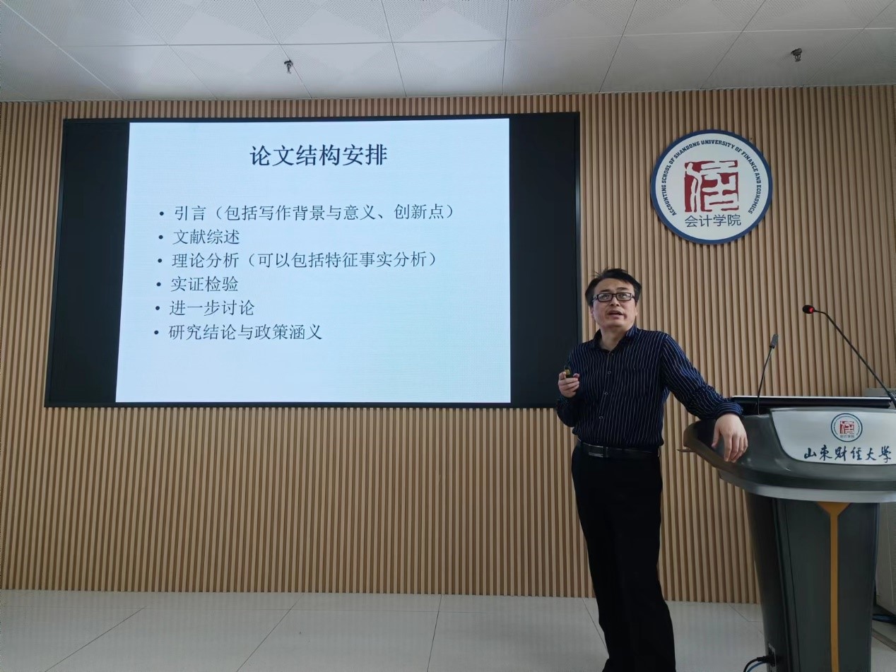 王明益教授从“论文选题、创新点、结构安排”等几个主要方面入手,并用他的研究团队发表在《世界经济》杂志的一篇论文为例,详细讲述了学术论文的写作技巧。结合自身投稿与审稿经历,王教授介绍了《经济研究》《管理世界》《世界经济》《经济学动态》《财贸经济》等刊物的用稿特点,并结合亲身经历提出了有针对性的投稿建议。