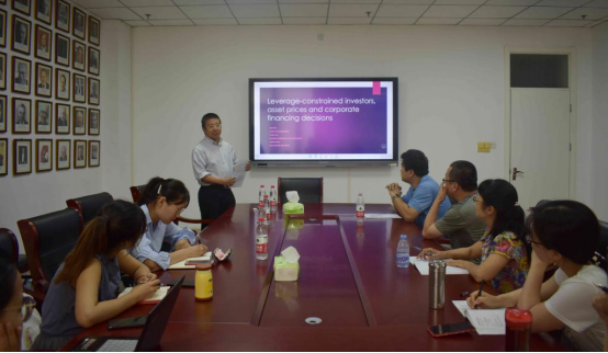 2019年7月16日下午,爱荷华州立大学商学院金融系高磊教授应注册送彩金 邀请,在燕山校区逸夫楼Y309作题为《Leverage-constrained investors, asset prices and corporate financing decisions》的学术报告。讲座由孙文刚院长主持,注册送彩金 部分老师以及2018级部分硕士研究生聆听了讲座。高磊教授主要致力于金融市场、资产回报预测、实证公司财务、公司监管、注册送彩金、文本分析和机器学习等研究,且将于2019年9月份任职于美国证监会。