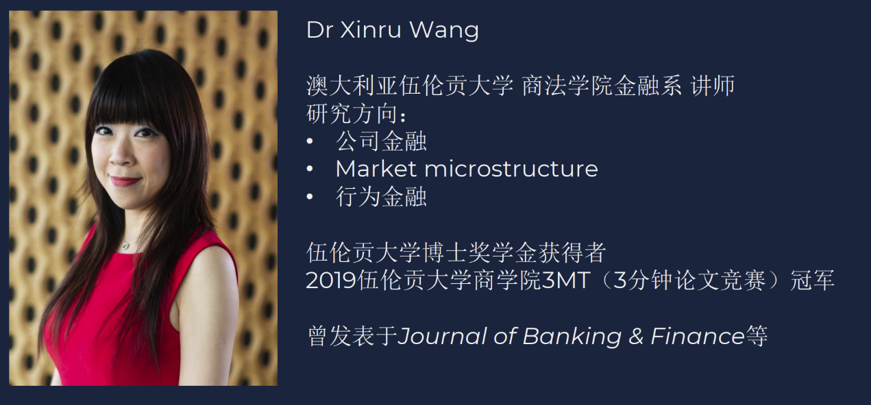最后一次课程,由5位博士生,按照黄博士要求,对会计领域国际权威期刊的文献进行解析汇报,黄博士与特邀嘉宾、澳大利亚伍伦贡大学金融系讲师Dr. Xinru Wang作点评,为同学们以后进行文献精读与解析提供了重要的指导借鉴意义。本期还邀请了伍伦贡大学的博士研究生、澳大利亚国家博士奖学金获得者Ms Ge(Heather)Zhang分享了在伍伦贡大学读博的经历与体会,使同学们了解了国内外研究生培养的共性与特性。