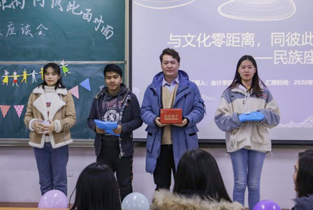 在游戏环节,“你划我猜”“击鼓传花”“拍七令”等环节的设计,既是对大家默契度的大考验,也在无形之中拉近了各民族同学的距离。更有抽奖环节,用包含着满满情意的奖品,温暖了各民族学子的心。