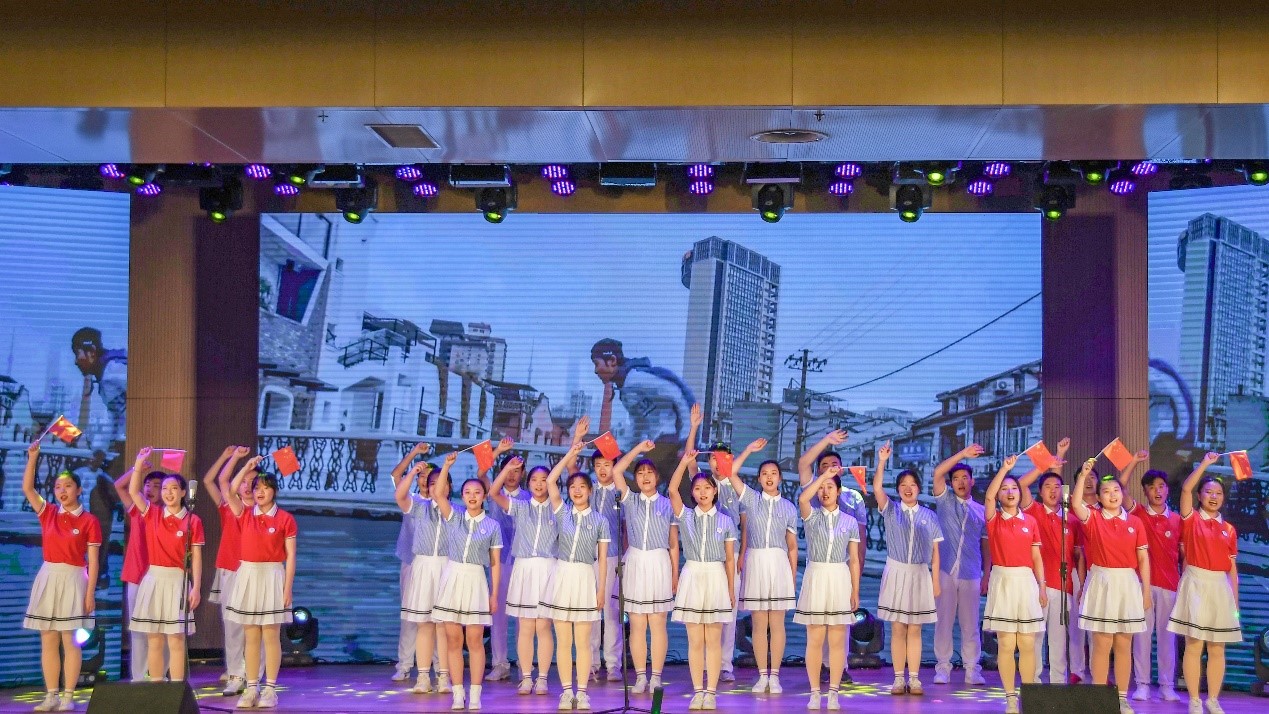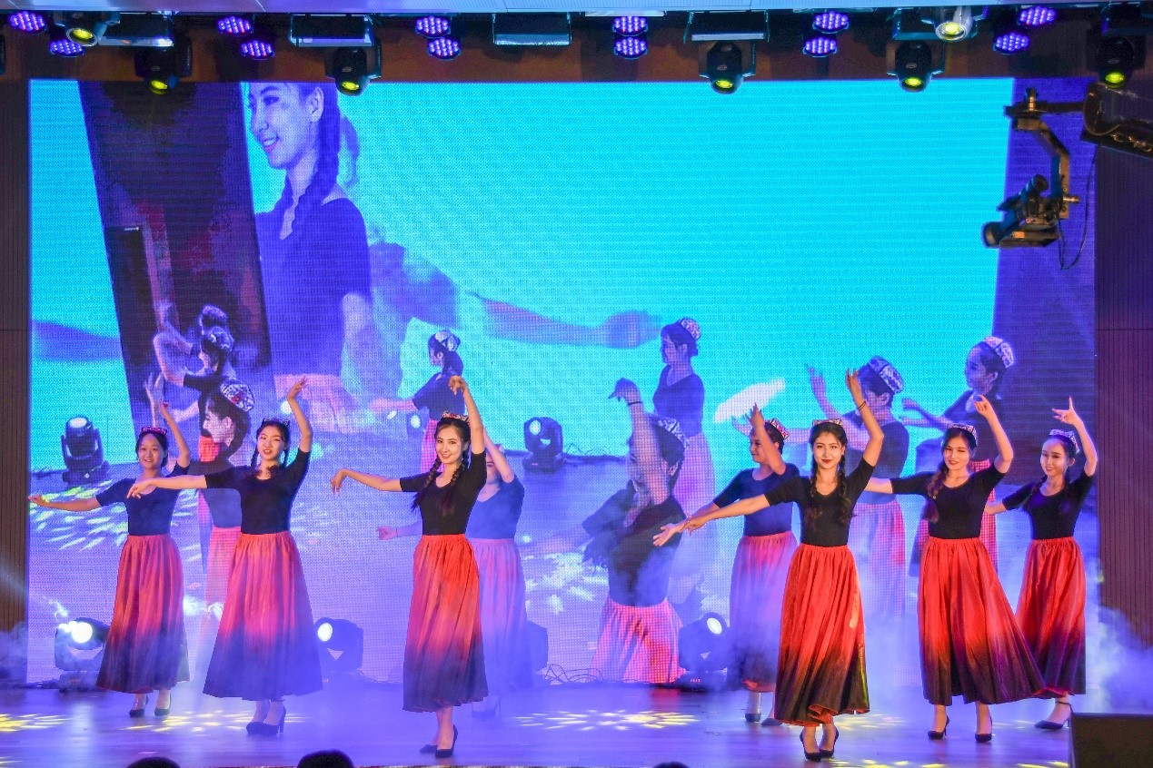 第三篇章“祖国万岁“,舞蹈《南京,南京》重现南京昔日盛世繁华,却惨遭遇涂炭历史;新疆同学带来的舞蹈《大漠之花》舞姿曼妙,引人瞩目,举手投足充满异域风情;歌曲《最美的太阳》表达了学长学姐对新生们的热切关注与关爱,传递出真诚的鼓励与祝福;朗诵《祖国,为您高歌》带人重温祖国的七十个春秋,音乐激昂,字句铿锵,热切颂扬举国上下,万众一心,风雨兼程,砥砺前行。