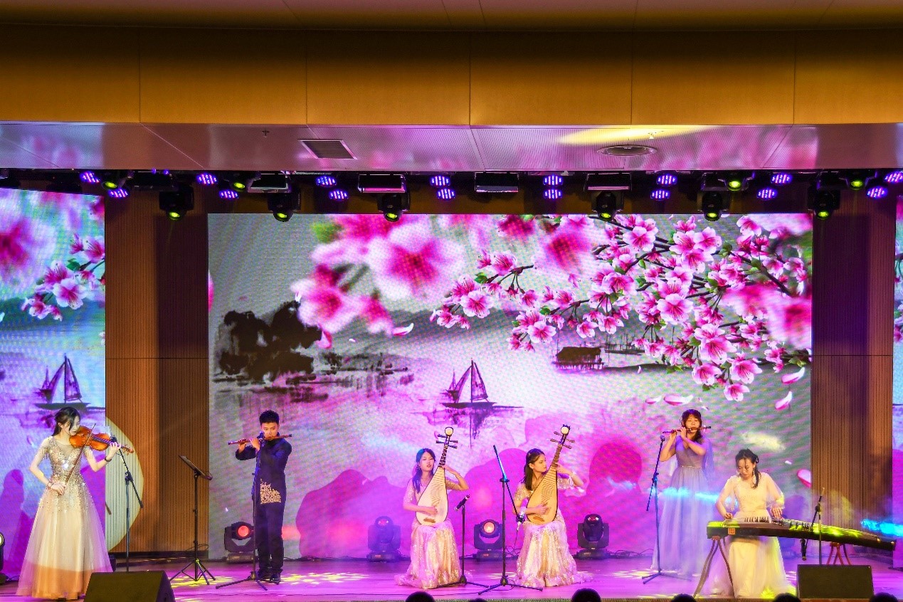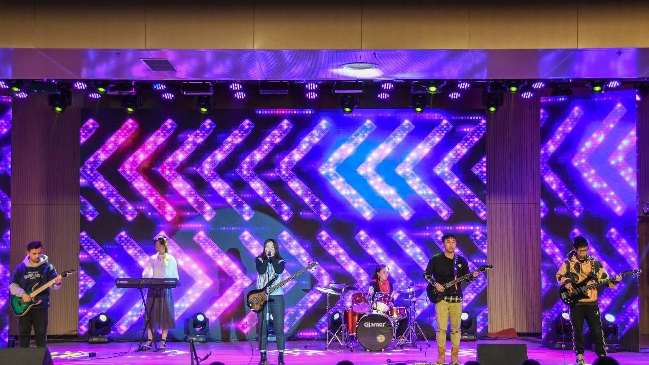 在音韵集乐社带来的歌曲奏唱中,晚会拉开帷幕,灯光绚丽,荧光挥舞。鼓点激昂,是青春的蓬勃朝气;美声悠扬,是华夏的壮丽乐章。青春梦想、家国情怀融于“书香会院”“筑梦青春”“祖国万岁”三个篇章之中,深深感染了在场的每位观众。