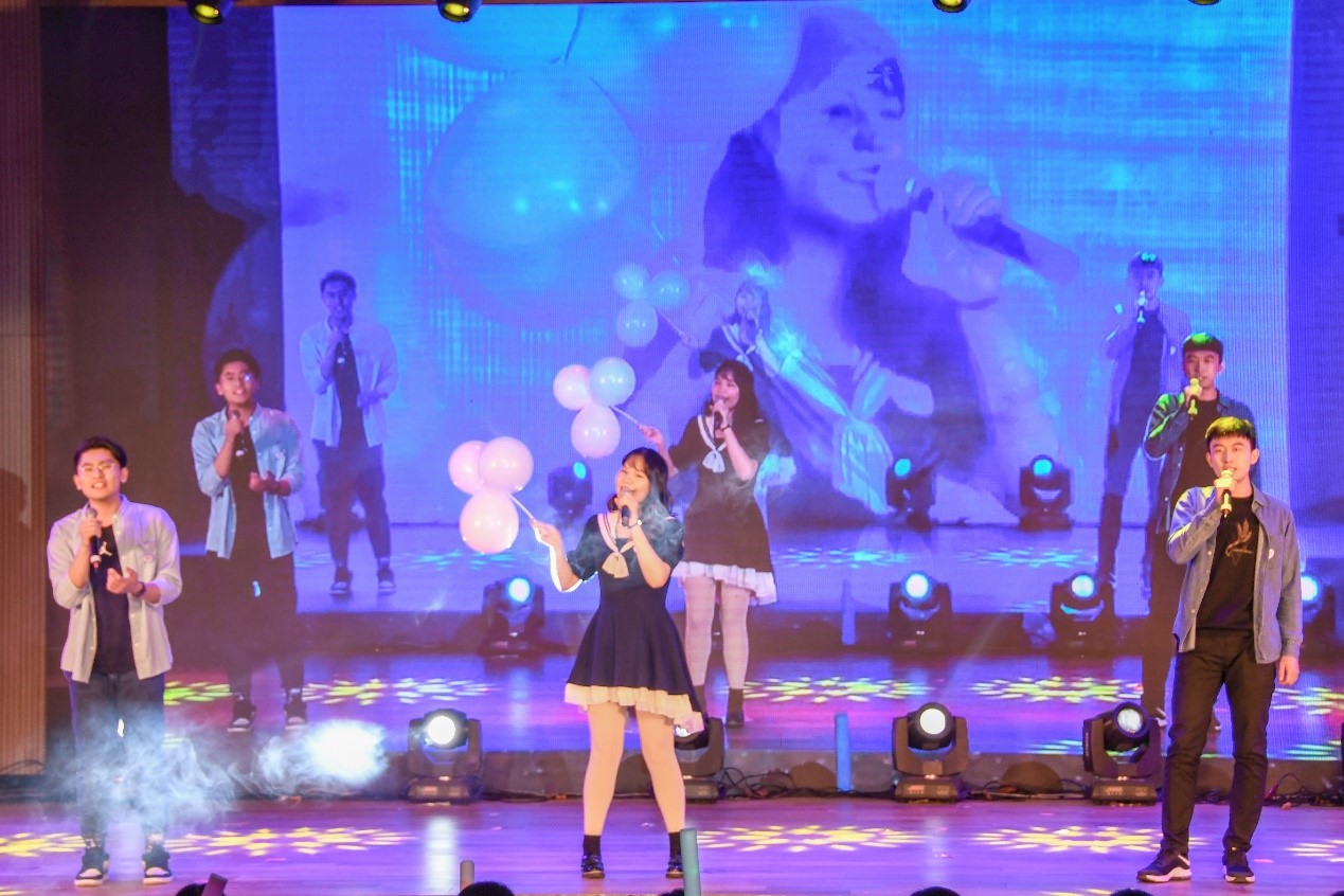 第二篇章“筑梦青春“,歌曲串烧《去山财的路》融合多种风格音乐,尽现青春风采,放飞会院梦想;舞蹈《这就是街舞》动感的节拍点燃全场,彰显青春活力;话剧《追梦山财大》以温暖的故事引人入胜,体现同学间团结友爱,互帮互助的精神;歌曲《告白气球》旋律欢快,台下闪光灯挥舞,温馨互动,尽显浪漫。