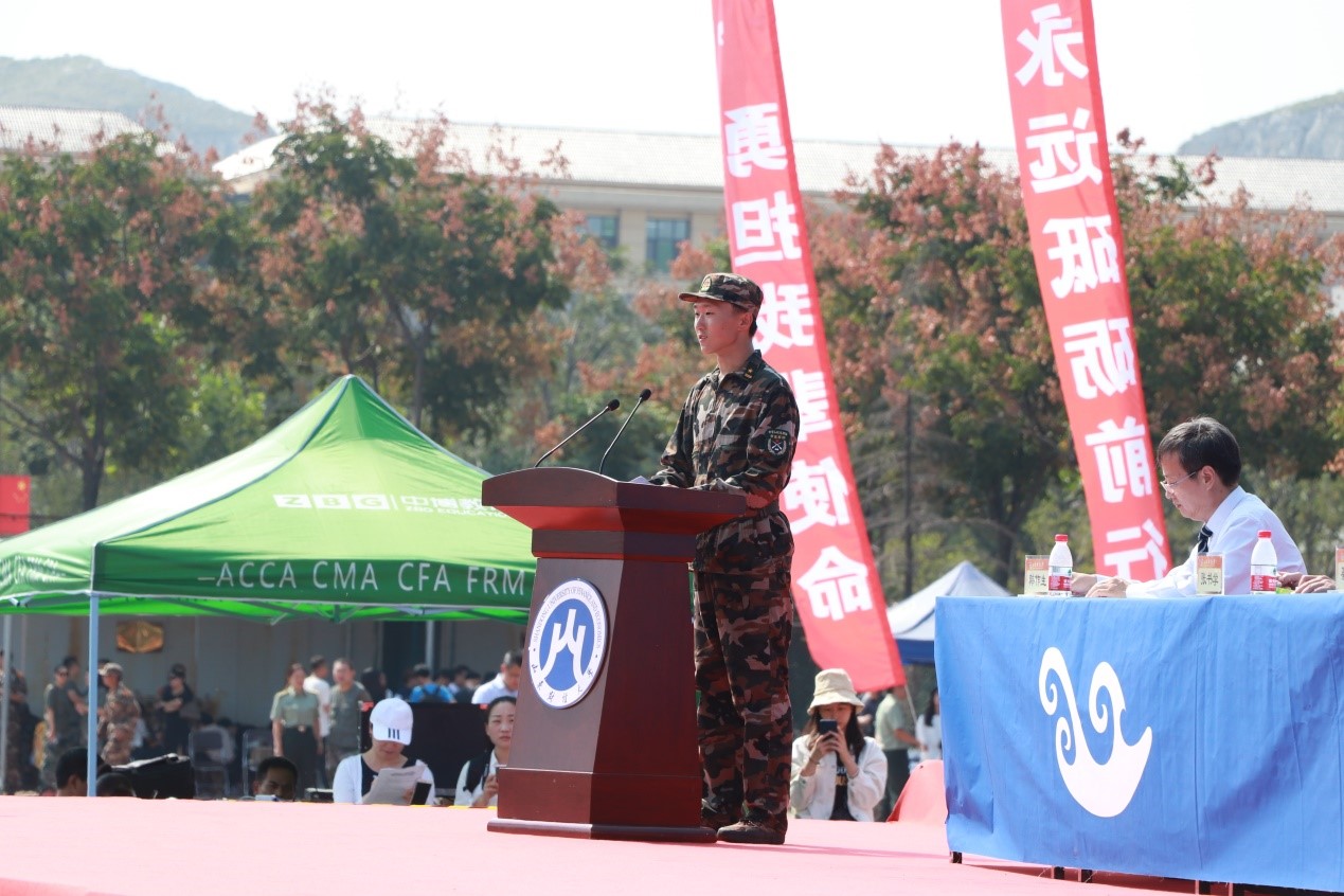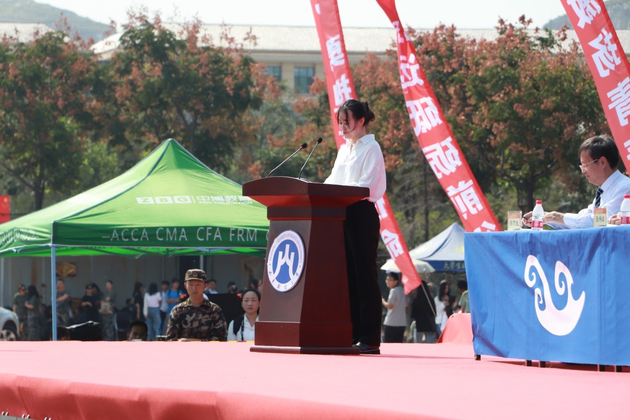 16级财务管理专业在校生代表武奕昕将自己对大学生活的理解凝练成“相信”和“坚持”两个词,传递了自己的所思所感。她指出,新生要相信自己的无限潜力,坚持自己不同的选择,在大学生活中提升人生高度、丰盈人生厚度、铸就人生格局、成就人生梦想。希望新生带着军训时的那份坚强,站好人生路上的每一个军姿,走好人生路上的每一个正步。