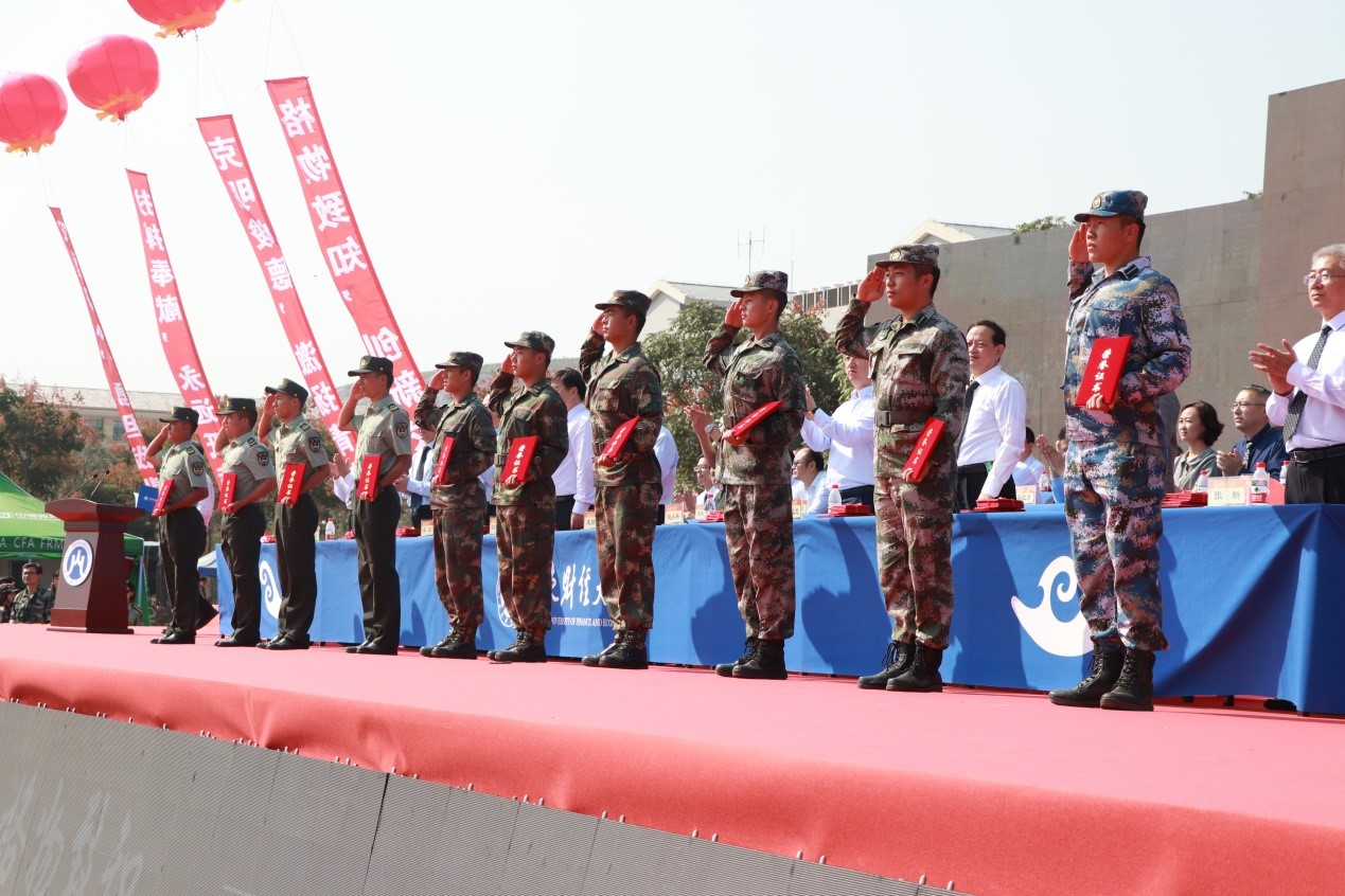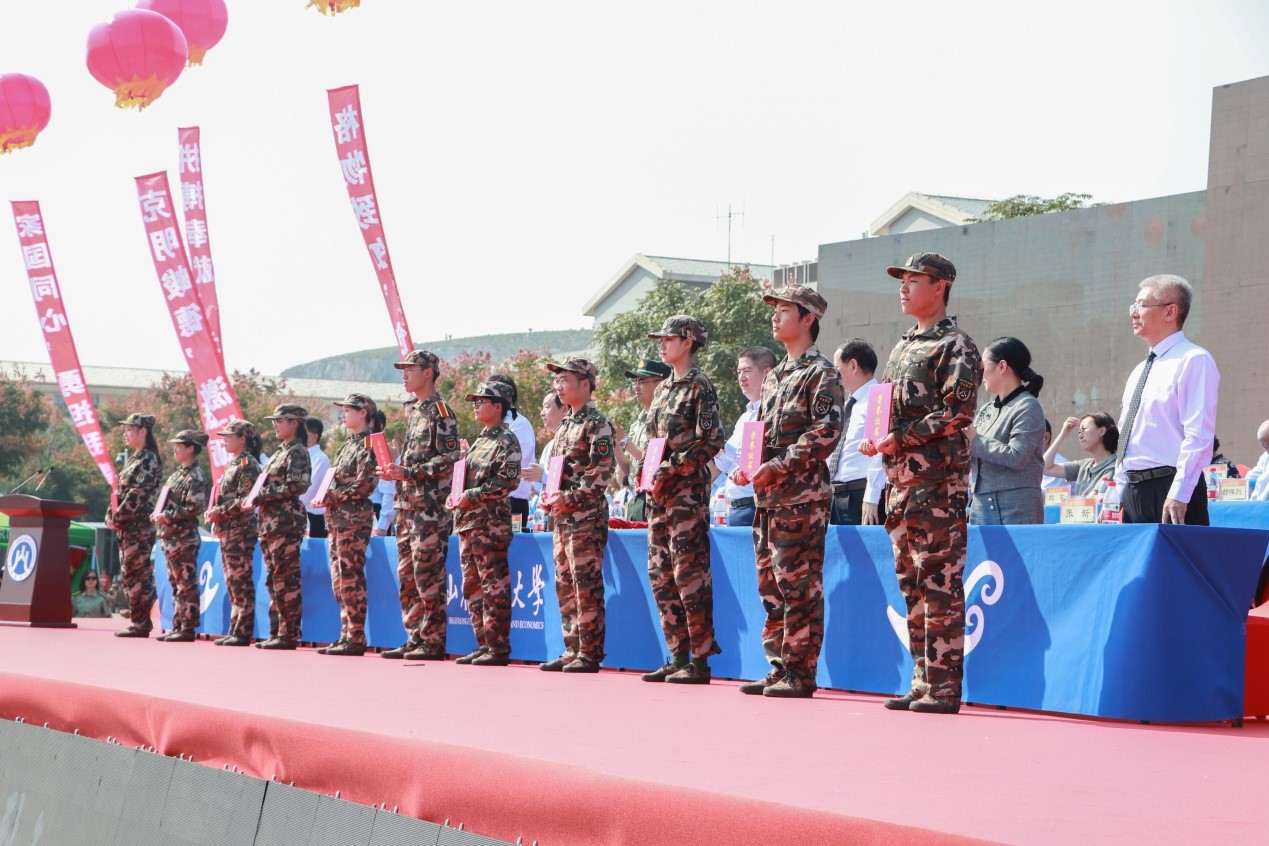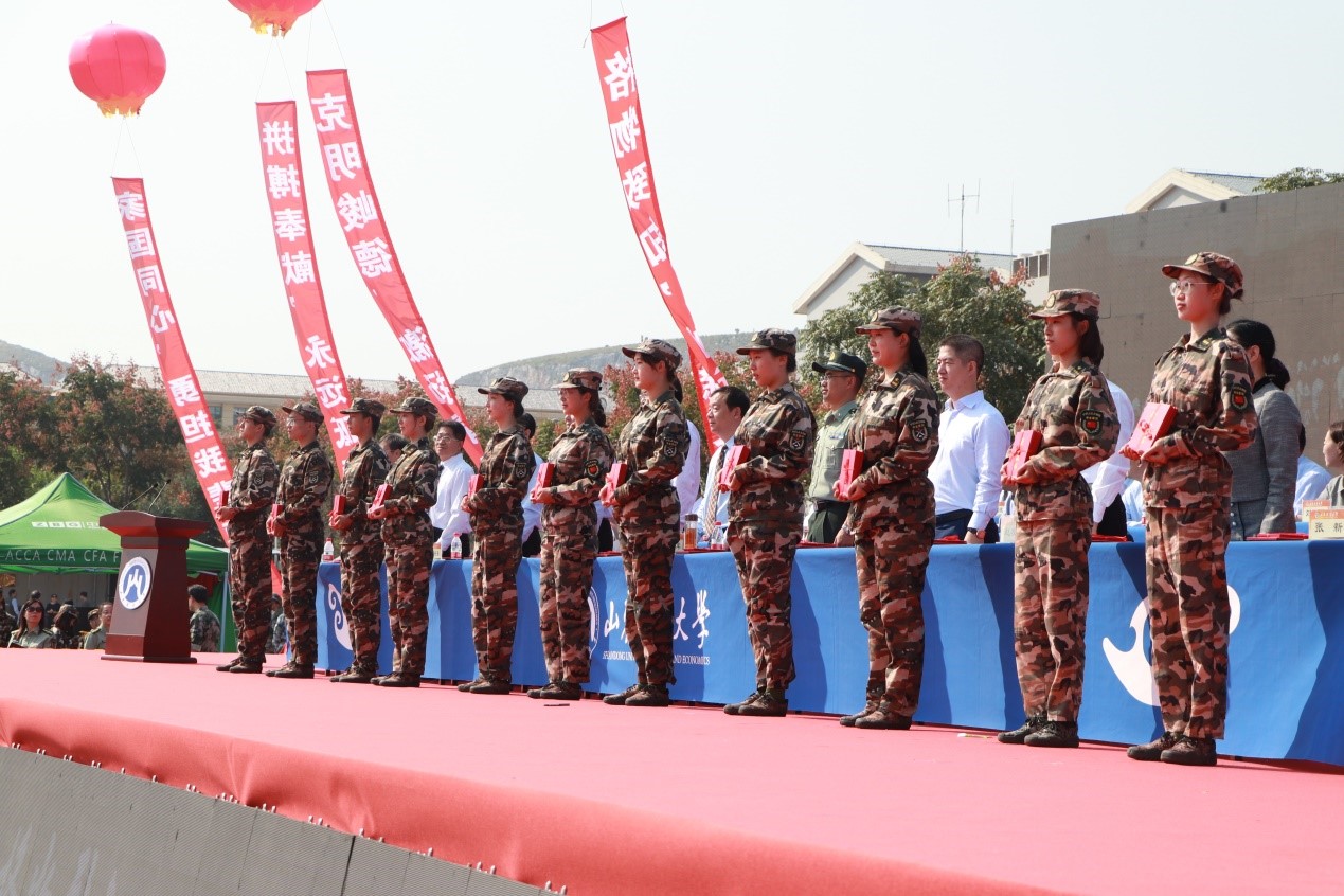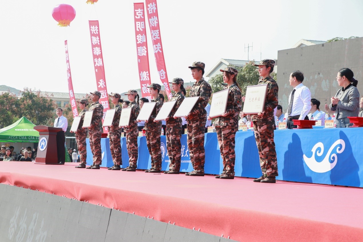 大会表彰环节,注册送彩金 荣获“军训先进工作单位” 称号;王文伟老师荣获“军训先进工作者”称号;韩笑薇、朱悦、李呈明等80名同学荣获优秀新生入学奖学金;张念国、杨超然、姚甲琳等20名同学荣获生源基地优秀学生奖学金;于飞、邰佳伟、娄智淳等51名同学荣获“军训优秀学生”称号。胡铭、许洪瑄、王子怡和姜梦瑶荣获“优秀志愿者”称号。(详细名单请点击附件下载)