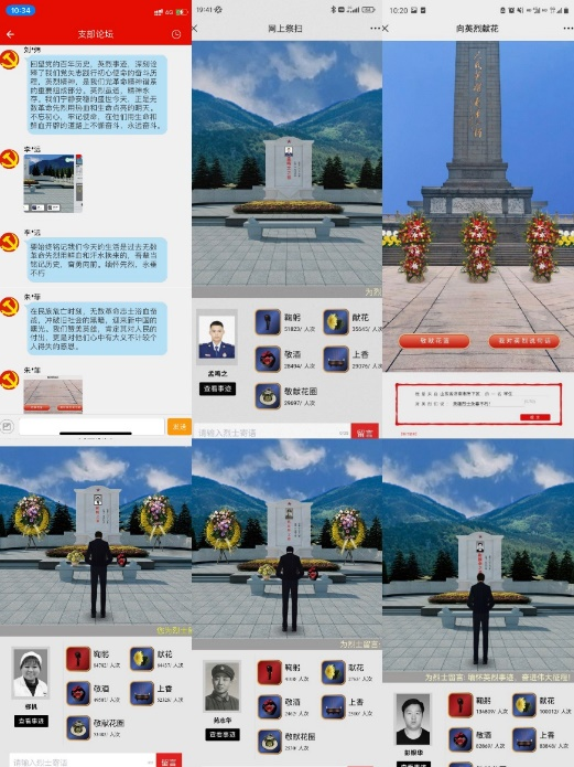一是组织开展网上祭英烈活动。各支部党员登录“中华英烈网”门户网站,点击“2022·奋进·网上祭英烈”线上祭扫平台向英烈献花、留言、祭奠,并在“灯塔-党建在线”的支部论坛中交流感悟,学习英烈事迹,致敬英雄烈士。高薇表示:“此次网上祭扫活动使我们用不同方式缅怀英烈,从英烈的精神中不断汲取奋进力量,传承和弘扬英烈的精神,珍惜来之不易的和平幸福。”此次活动激发了党员群众对革命先烈、抗疫英雄的深深崇敬和怀念之情,树立了正确的世界观、人生观、价值观,并深刻领会在和平年代为祖国的繁荣、富强作贡献的意义。